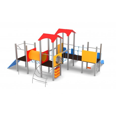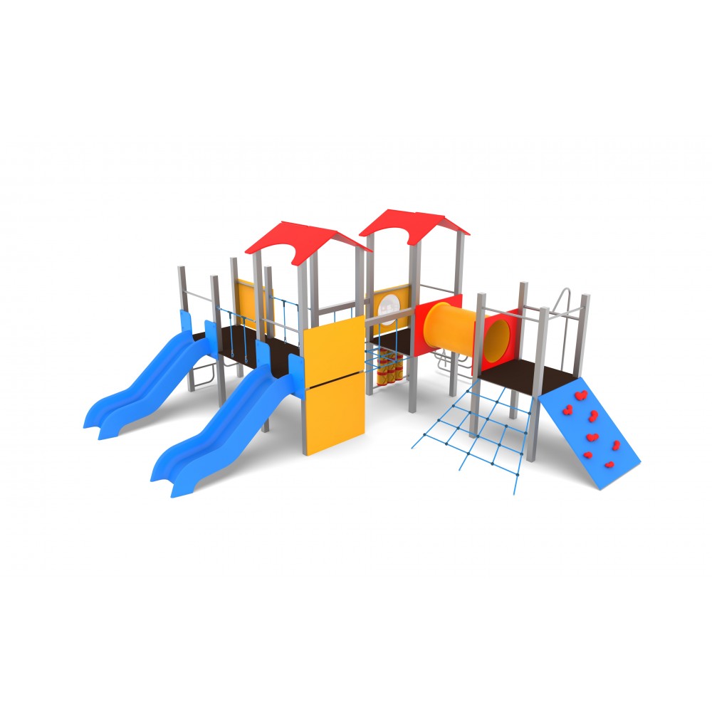 Cuenta con dos toboganes , un tubo de gateo, rocodromo, malla de escalada, paneles interactivos y dos puentes